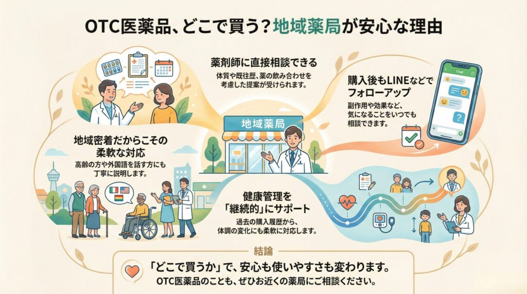 OTC医薬品も、ぜひ私たちの薬局にご相談ください。